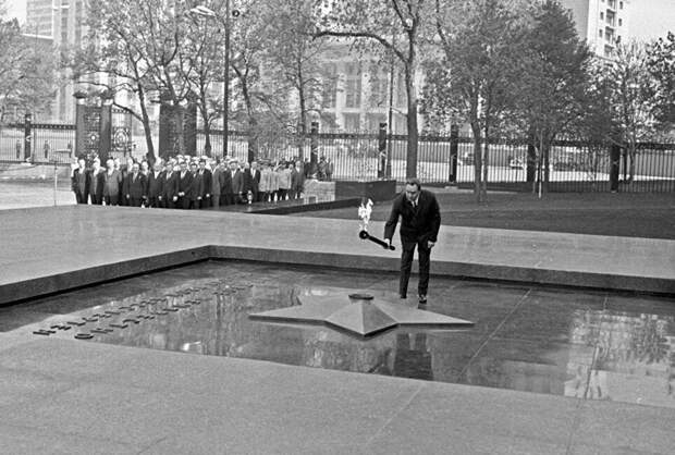 Вечный огонь у Кремлевской стены зажег лично Леонид Ильич Брежнев. Генсек-фронтовик не понаслышке знал о том, какой ценой далась советскому народу победа над нацизмом.