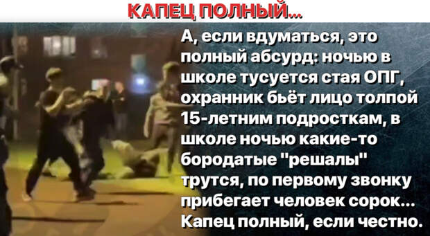 Вообще произошедшее в школе - это просто кошмар. По сути, южане устроили там самый настоящий бойцовский клуб с бородатыми "решалами", которые приезжают на разборки по первому звонку. Вот, как это комментируют местные жители.