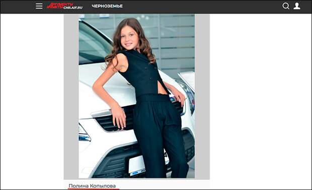 В 2011 году совсем юная Полина Копылова принимала участие в конкурсе "Маленькая супермодель Курска"/Скриншот страницы сайта chr.aif.ru