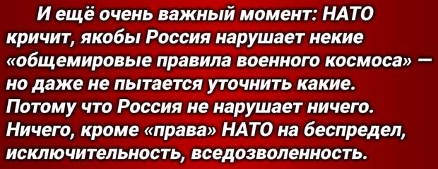 — выдержка из официального доклада НАТО, опубликованного объединённым комитетом командования [аналог ГШ в РФ]. В документе фиксируется паника альянса и признание того, что российские спутники лишают НАТО возможности управлять собственными аппаратами.