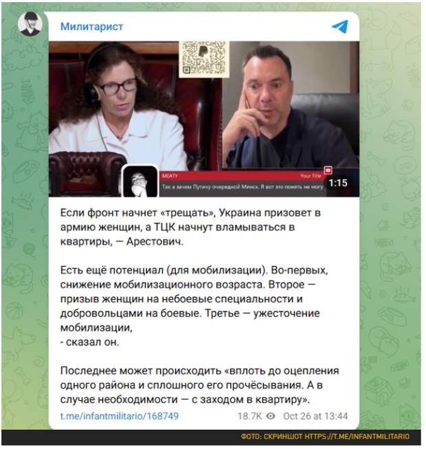 Куда более мрачной картина будущего украинцев предстаёт после прогноза Алексея Арестовича*. Беглый украинский политик заявил, что после того, как фронт "затрещит", ТЦК выйдут на новый уровень отлова "добровольцев".