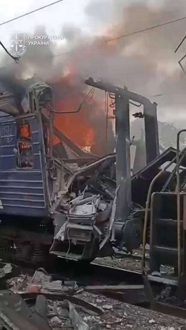 Киевские ресурсы пишут, что «удар был нанесен беспилотником» по поезду, который стоял на вокзале в Шостке (готовился к отправлению), а через несколько минут, когда проходила эвакуация пассажиров, БПЛА атаковал еще один поезд. Зеленский до того «распереживался», что поставил у себя в канале видео, на котором горит пусто й вагон, примыкающий к локомотиву.