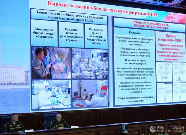 "Соединенные Штаты последовательно наращивают свой биологический потенциал и контроль за национальными коллекциями патогенных микроорганизмов не только на постсоветском пространстве. На сегодняшний день функционируют и постоянно модернизируются более 30 подконтрольных США лабораторий с высоким уровнем биологической защиты, что подтверждается официальными данными ООН", — сказал он, подчеркнув, что возможности данных лабораторий позволяют Пентагону проводить полный спектр исследований с возбудителями особо опасных инфекционных заболеваний.